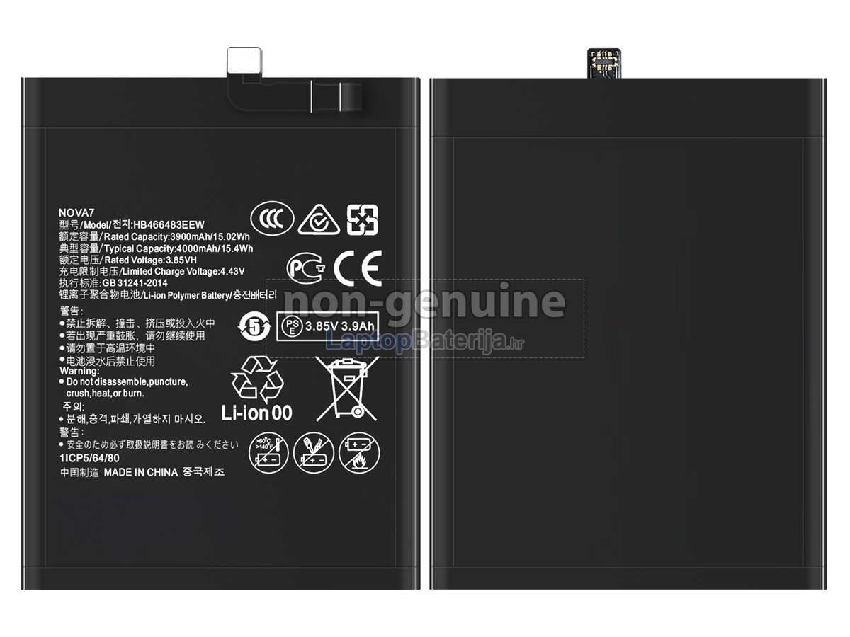 Baterija Huawei NOVA 7 SE 5G prihvaća nove uvezene stanice baterije, pouzdanu kvalitetu, izvrsne izvedbe kao i dulju uporabu. Pored toga, ljuska zamjenska baterija Huawei NOVA 7 SE 5G napravljena je strogo sukladno s izvornim oblikom baterije 1:1 uporabom legirani ekološki materijali ABS+PC otporne na temperaturu i trošenje kako bi savršeno odgovarala vašoj opremi i donijela vam savršeno iskustvo uporabe.