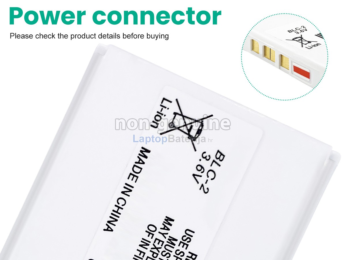 Baterija Nokia 3350 prihvaća nove uvezene stanice baterije, pouzdanu kvalitetu, izvrsne izvedbe kao i dulju uporabu. Pored toga, ljuska zamjenska baterija Nokia 3350 napravljena je strogo sukladno s izvornim oblikom baterije 1:1 uporabom legirani ekološki materijali ABS+PC otporne na temperaturu i trošenje kako bi savršeno odgovarala vašoj opremi i donijela vam savršeno iskustvo uporabe.