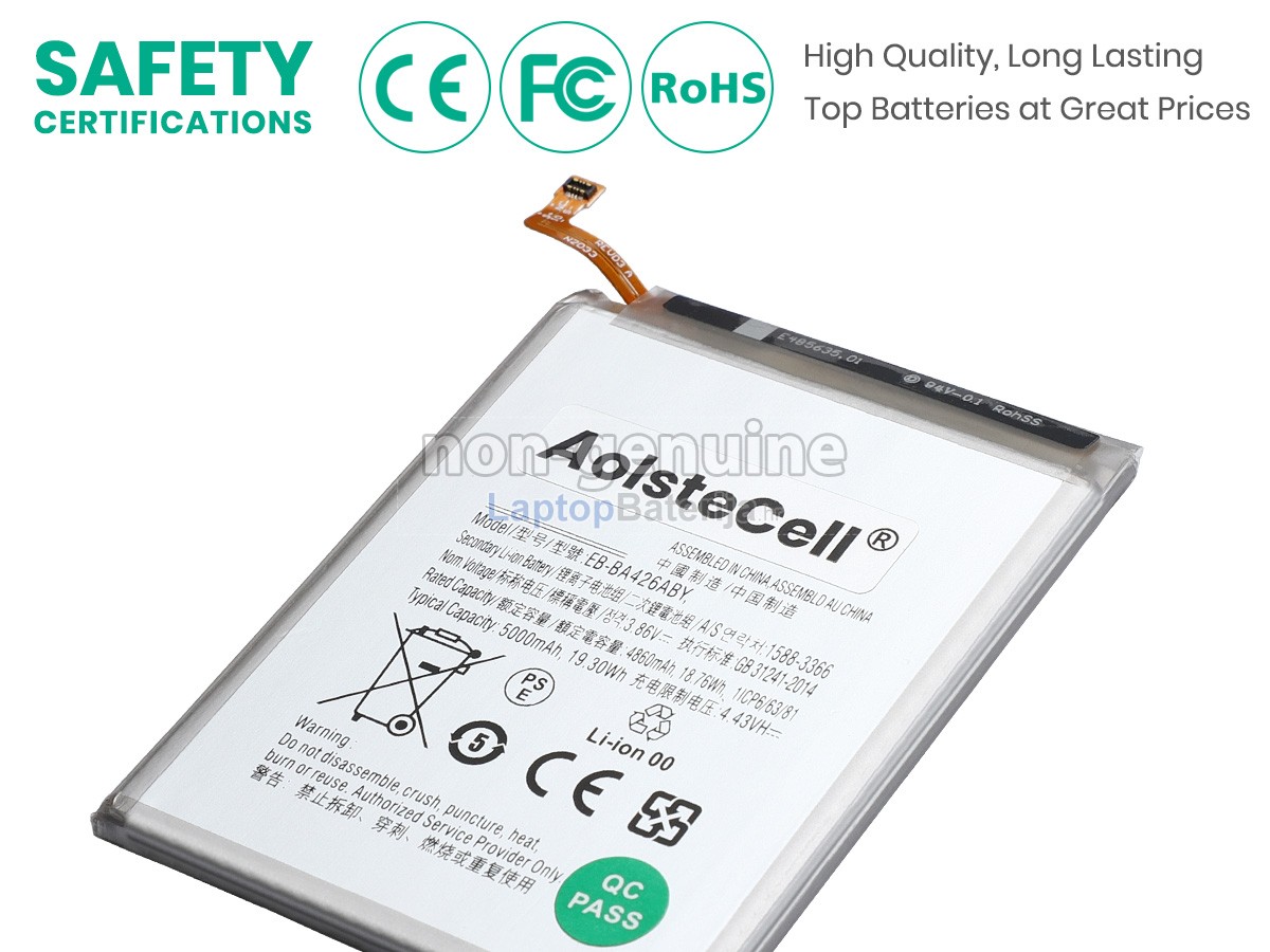 laptopbaterija.hr razumije da je sigurnost baterije veoma važna. Čvrsto smo predani tomu da ne koristimo niže kvalitetne sirovine! Svaka zamjenska baterija Samsung EB-BA426ABY strogo se ispituje stotine puta prije napuštanja tvornice kako bi se osigurali standardi visoke kvalitete. Mi strogo kontroliramo kvalitetu baterije, svaka baterija Samsung EB-BA426ABY prošla je CE, UL, ROHS, ISO9001 i druge certifikate o državnoj sigurnosti. Ne samo da je 100% kompatibilna već ima i pametnu zaštitu od sigurnosnih problema kao što su pretjerano punjenje, pretjerano pražnjenje i pregrijavanje. Pored toga, naš tehnički tim će, također, ispitati napon i kapacitet baterije prije isporuke kako bi osigurao da baterija koju primite radi ispravno.